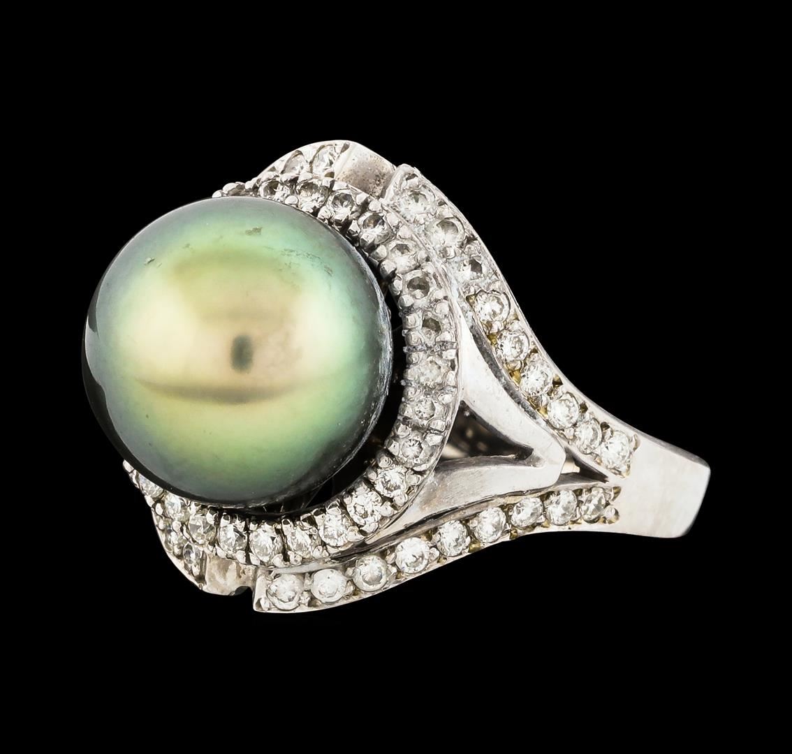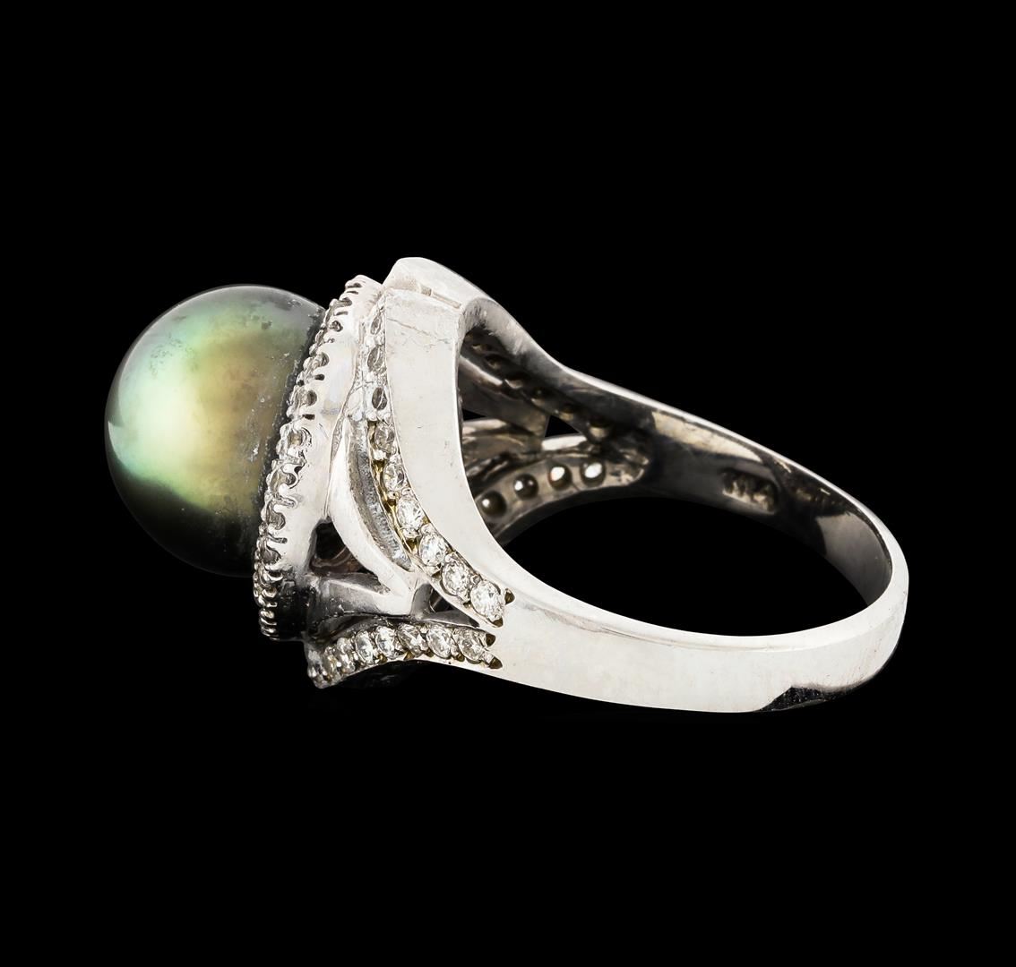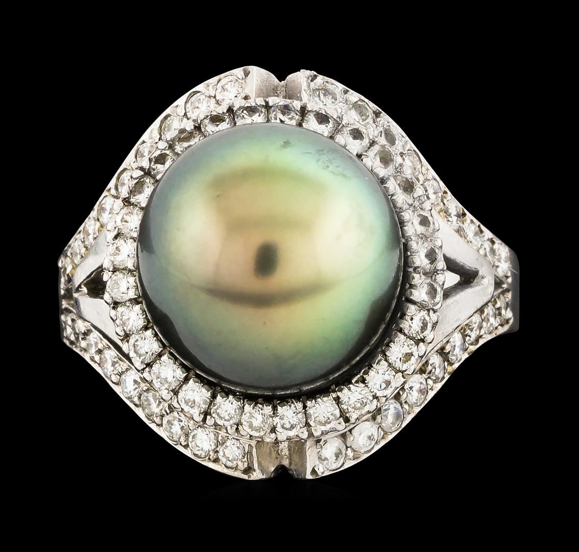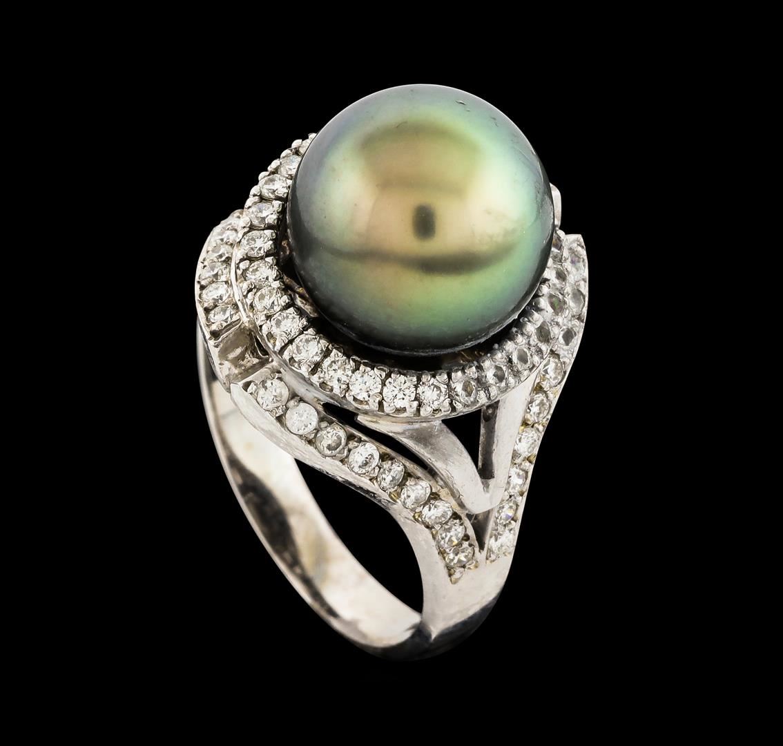 One ring : 14KT white gold weighing 6.85gm containing one pearl with side diamonds weighing 0.72ctw.