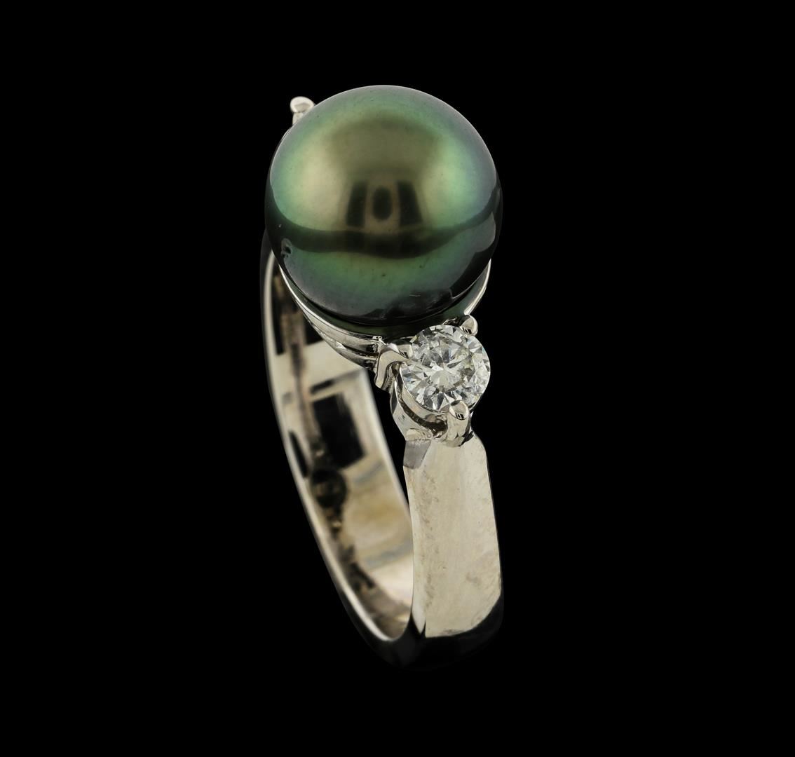One ring : 14KT white gold weighing 6.35gm containing pearl and diamonds weighing 0.40ctw.