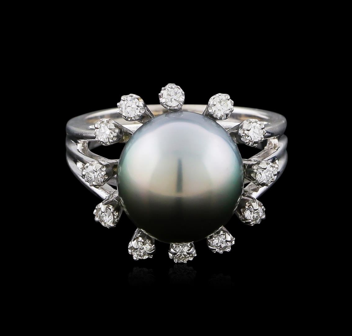 One ring featuring: 14KT white gold weighing 6.60 grams containing one pearl and diamonds with a total diamond weight of 0.30ct.