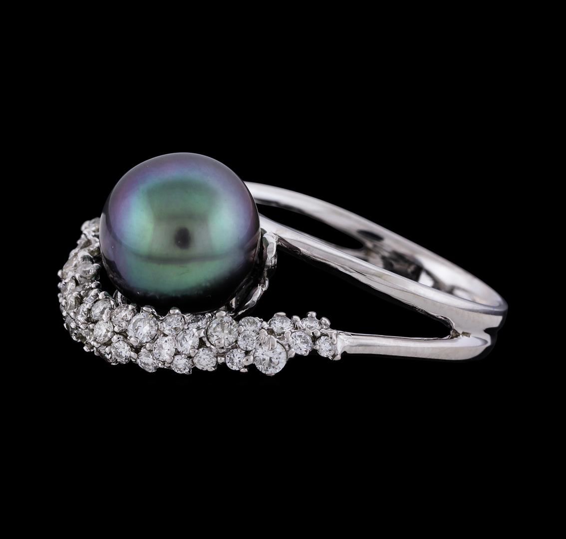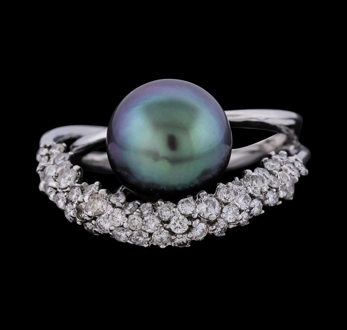 One ring : 14KT white gold weighing 4.70gm featuring pearl and diamonds weighing 0.75ctw.