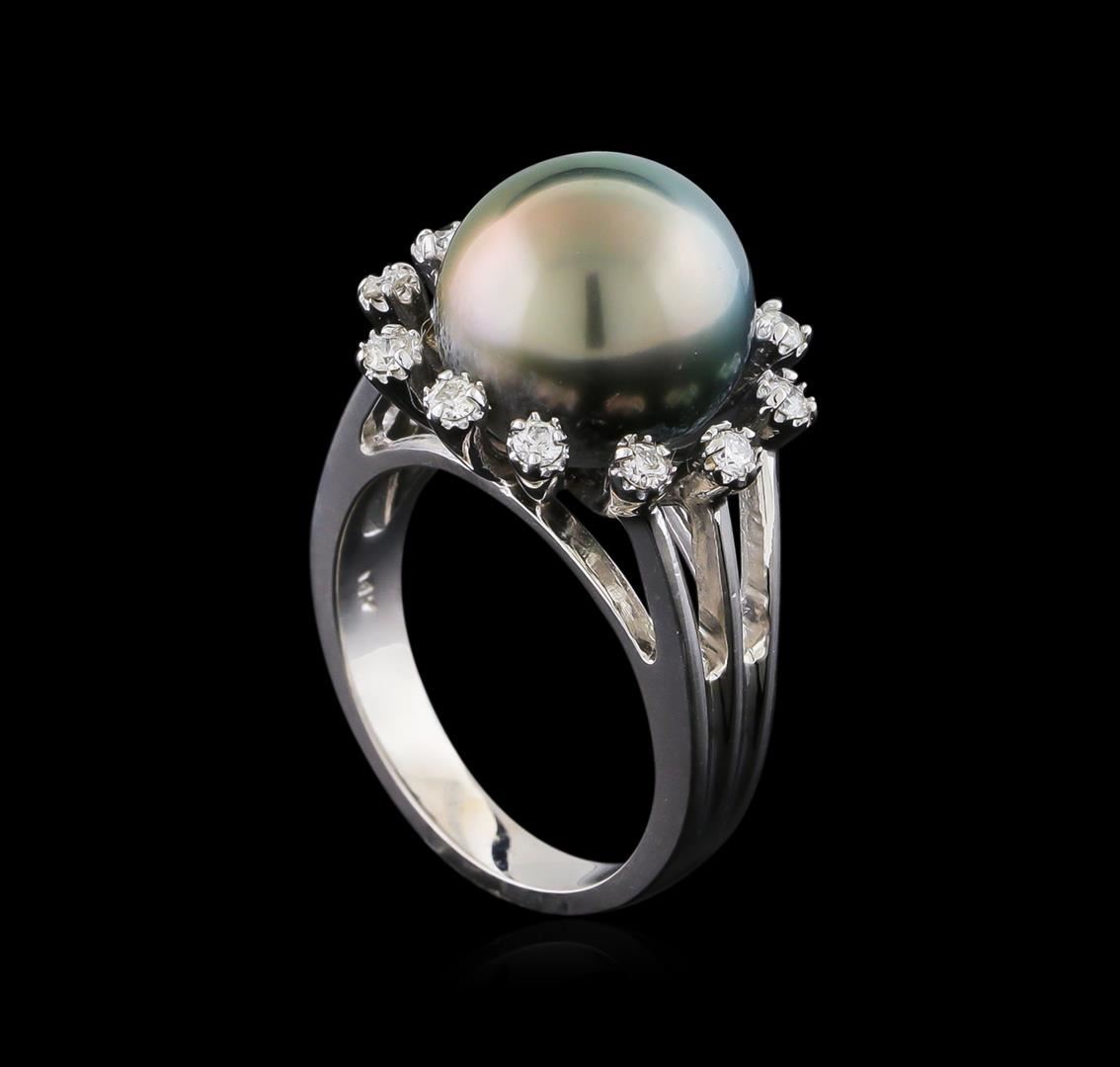 One ring featuring: 14KT white gold weighing 6.60 grams containing one pearl and diamonds with a total diamond weight of 0.30ct.