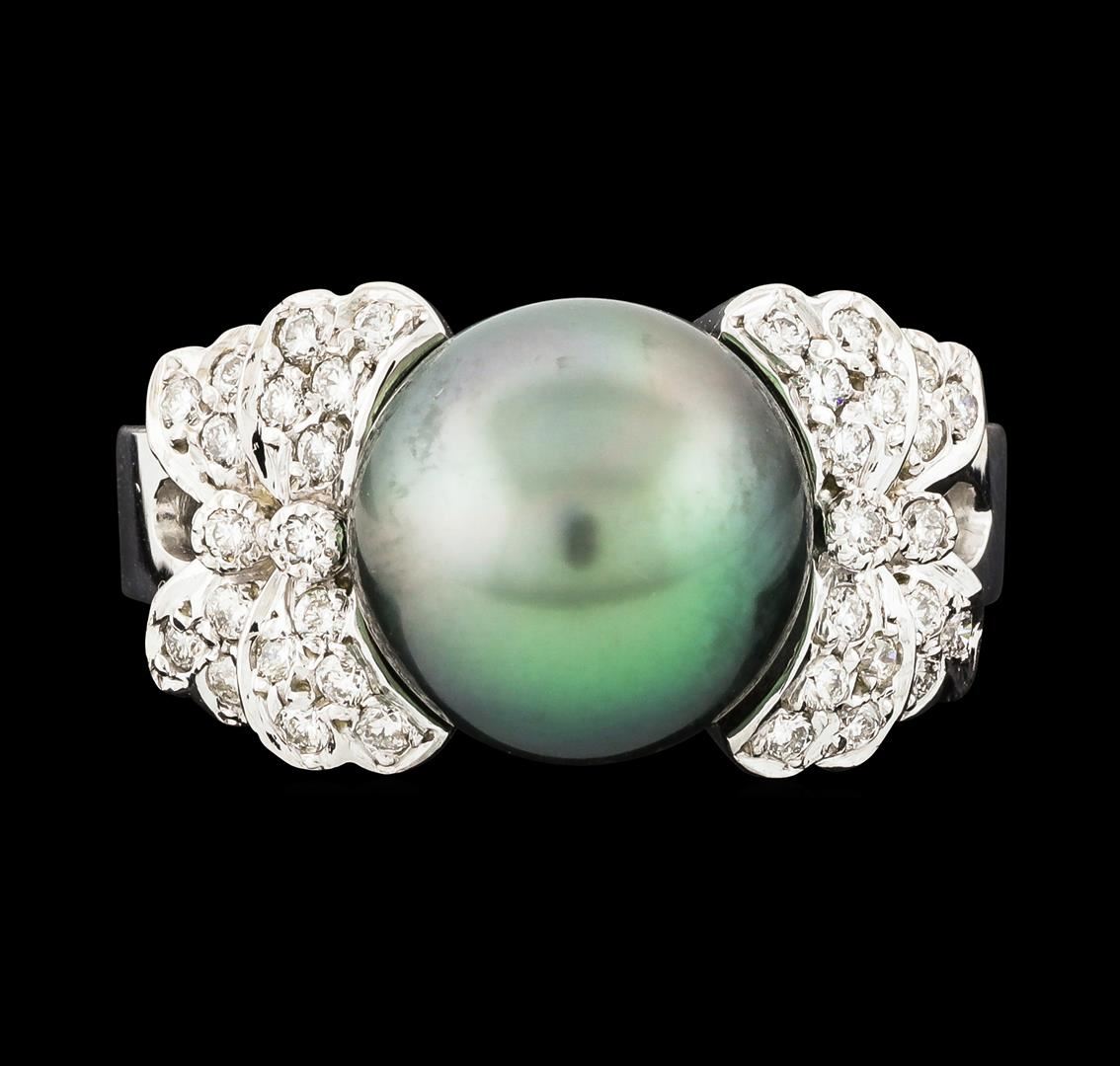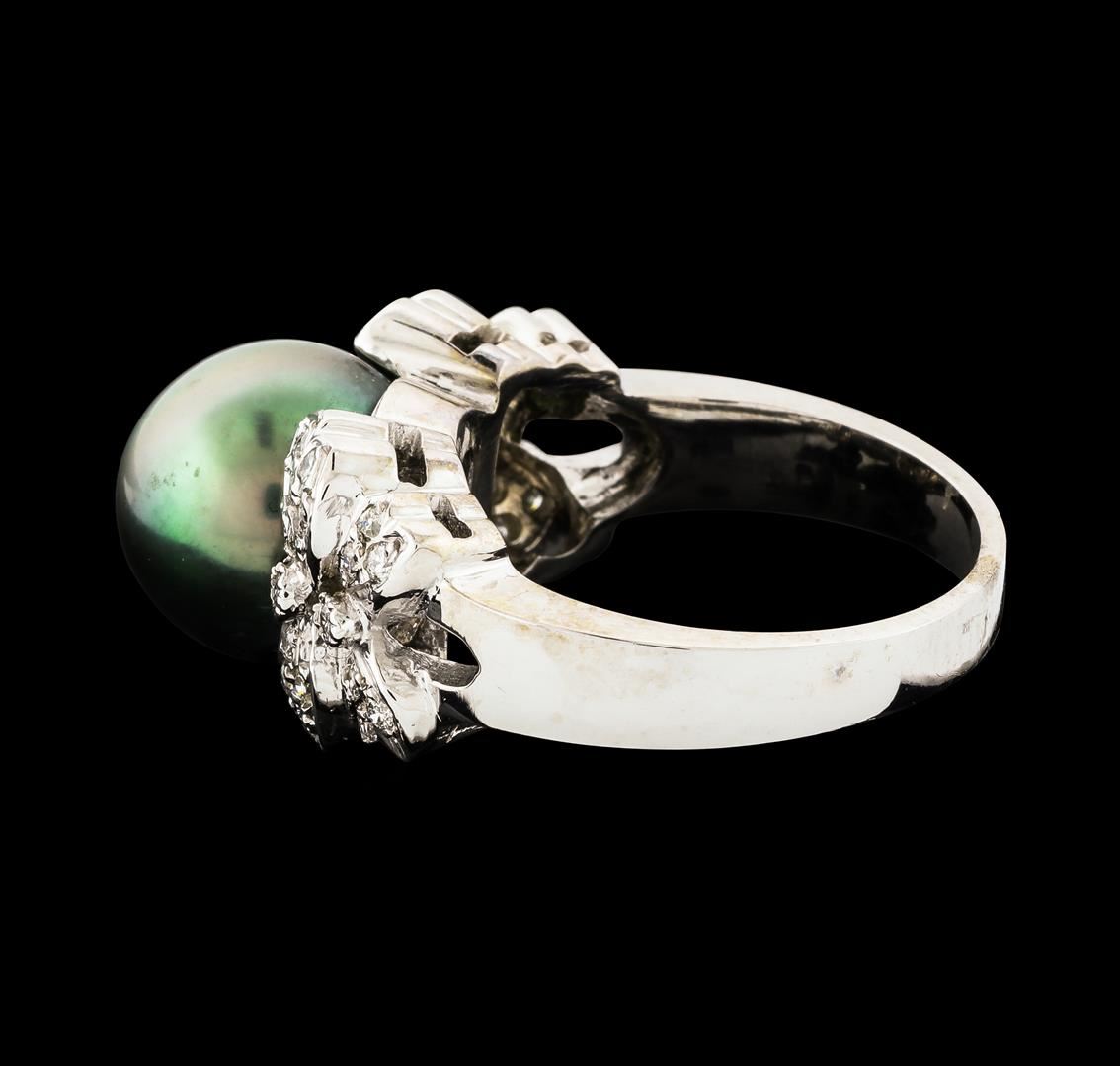One ring : 14KT white gold weighing 7.23gm containing one pearl with side diamonds weighing 0.36ctw.