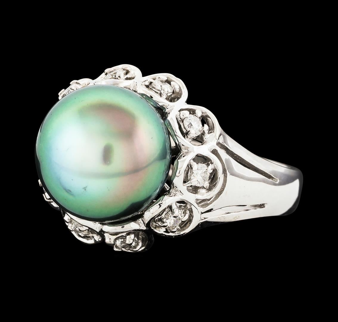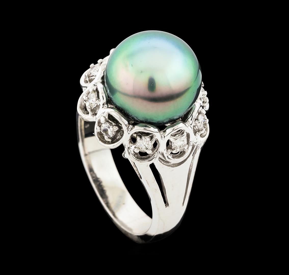 One ring : 14KT white gold weighing 6.34gm containing one pearl with side diamonds weighing 0.27ctw.