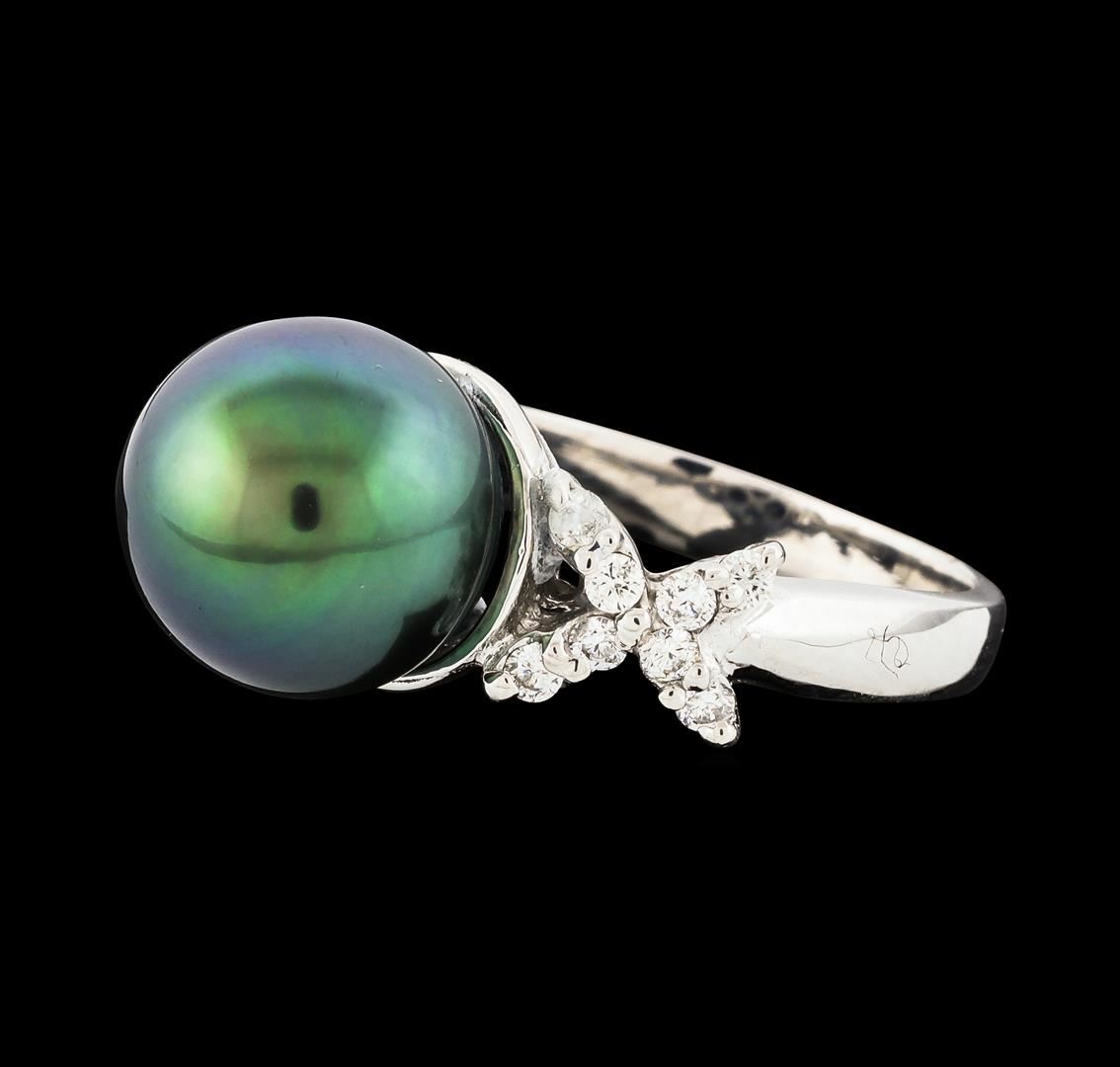 One ring : 14KT white gold weighing 3.84gm containing one pearl with side diamonds weighing 0.27ctw.