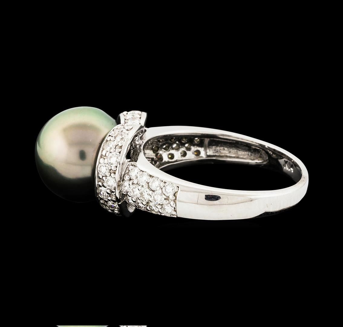 One ring : 14KT white gold weighing 4.11gm containing one pearl with side diamonds weighing 0.73ctw.