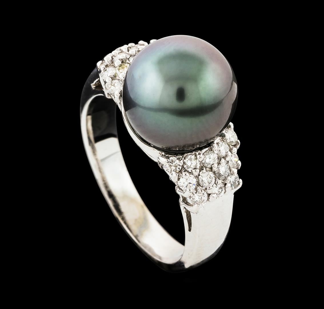 One ring : 14KT white gold weighing 4.98gm containing one pearl with side diamonds weighing 0.1.42ctw.