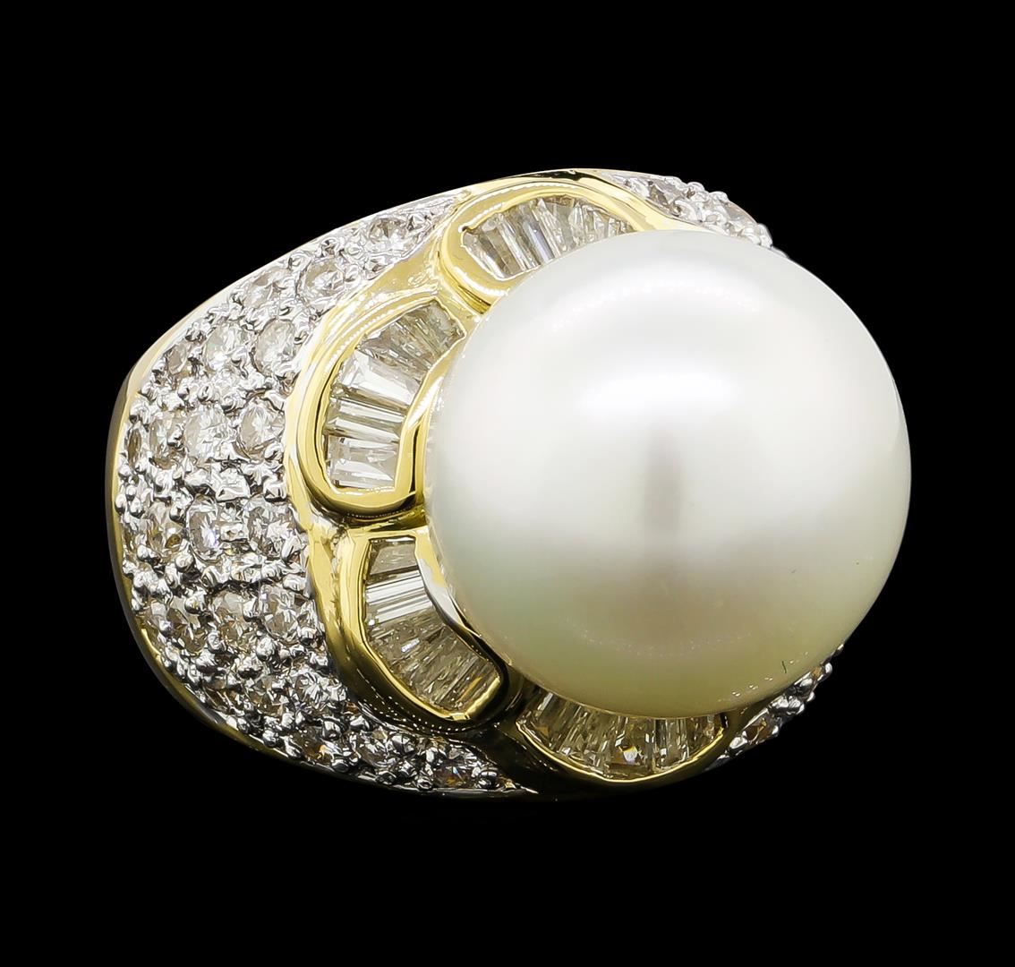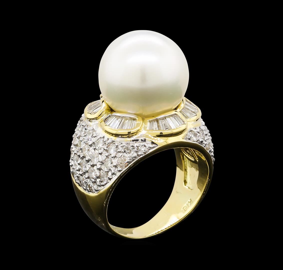 One ring featuring: 18KT Yellow Gold containing Pearl and Diamonds with a total weight of 1.39ct. Total Weight of Ring: 16 grams.
