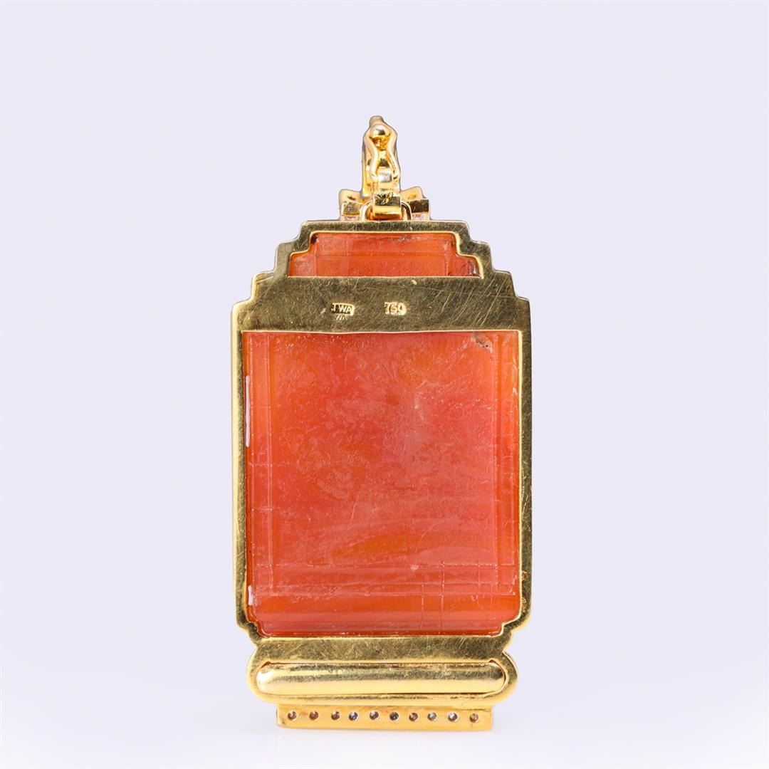 Pendant With Antique Chinese Qing Dynasty Glass Panel of Confucius containing twenty-two brilliant cut round diamonds weighing approximately 0.25 cts. Total weight is 30 gm. Estimated retail value $3,360.