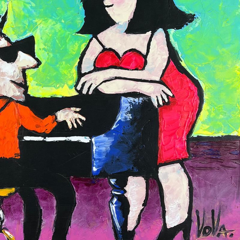 This is an untitled original painting, acrylic on canvas, by Vova. Hand Signed by the artist, the piece comes with a letter of authenticity. Measures approximately 27" x 23".