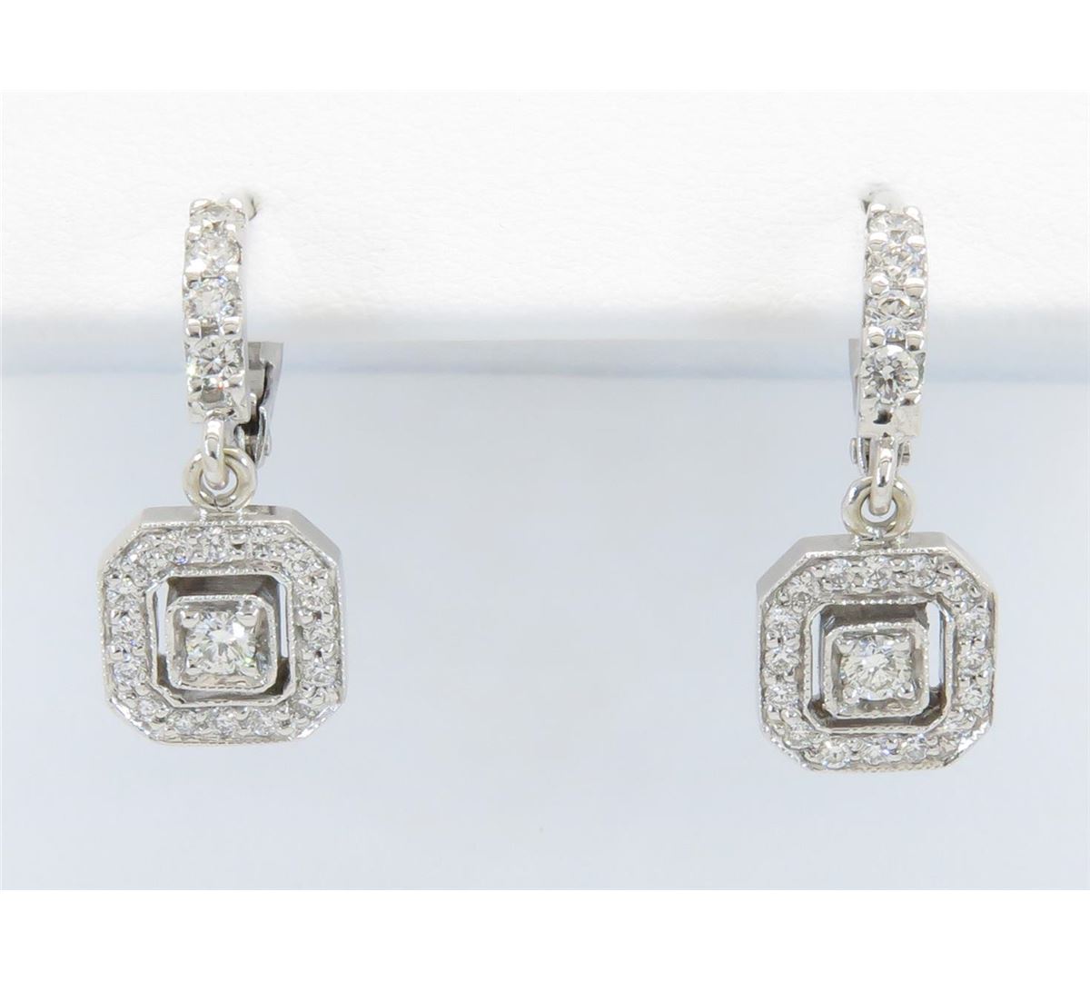 Two tested 18K White gold designer Penny Preville diamond earrings. Containing: 42 Round Brilliant Cut Diamonds. Clarity: SI, Color: G-H. Approximate total diamond weight: .25CTW. All diamonds are graded in the mounting unless otherwise stated. Weight of earrings: 3.3 grams.