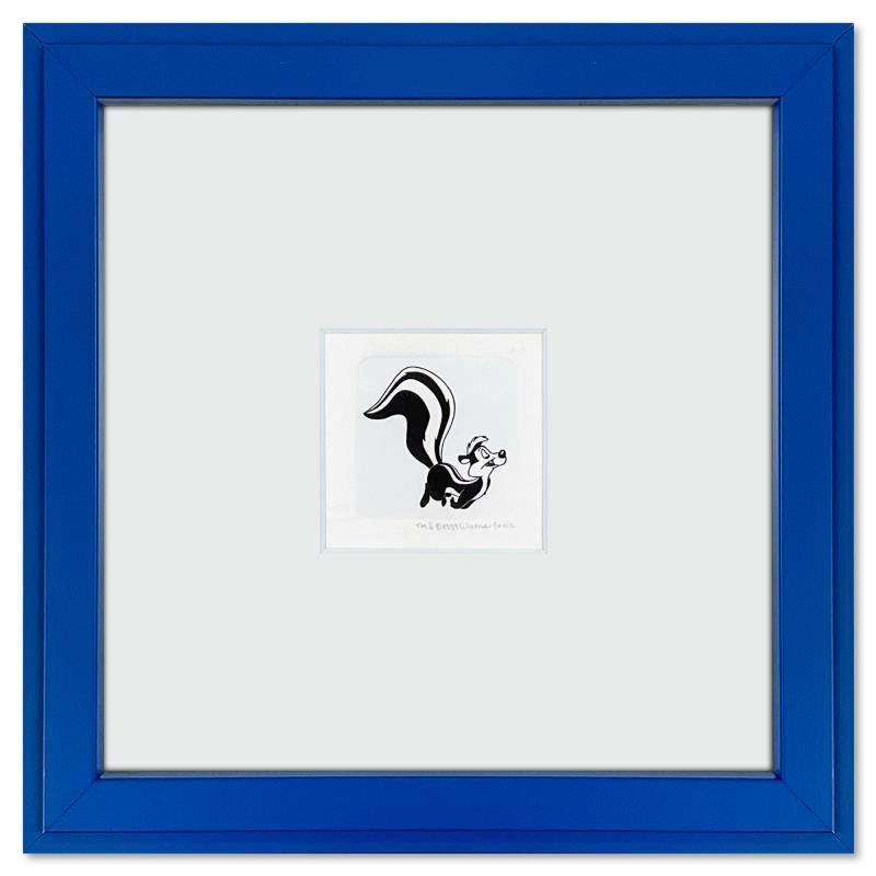 "Pepe le Pew" is a limited edition etching on paper with hand tinted coloring from Warner Bros. numbered and dated 1999. This piece comes framed. Measures approx. 9" x 9" (frame) 1.5" x 1.5" (image).