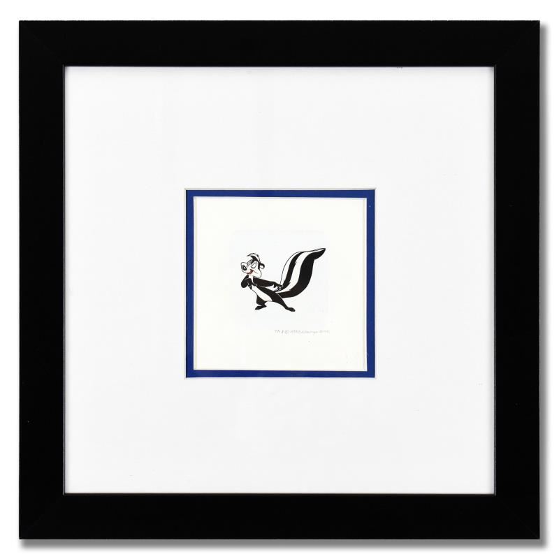 Pepe le Pew by Looney Tunes. "Pepe le Pew" is a limited edition etching on paper with hand-tinted coloring from Warner Bros, numbered and dated 1999. This piece comes framed. Measures approximately 14" x 14" (frame), 2.5" x 2.5" (image).