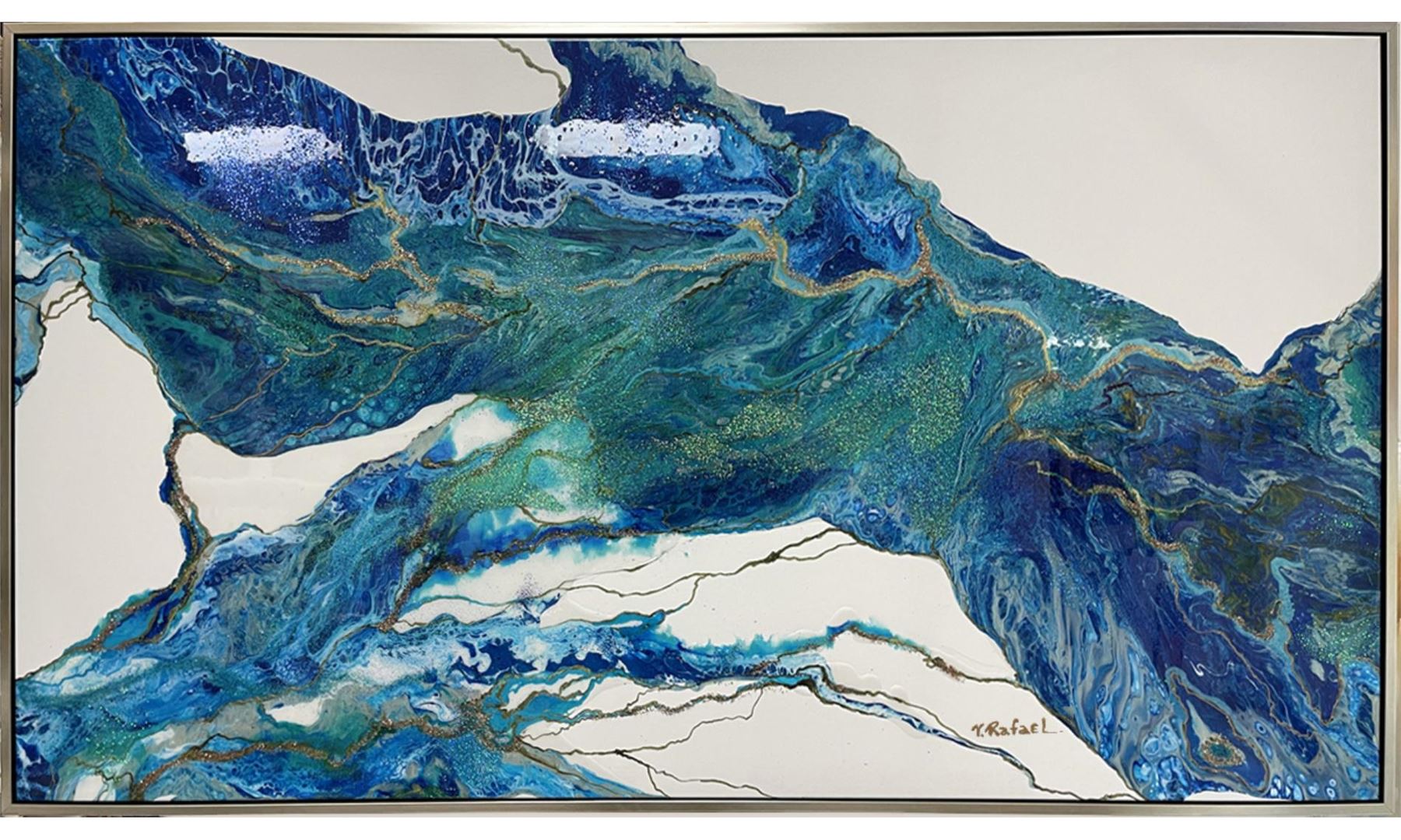 Enchanting original mixed media with poxy on canvas. Hand-signed by Rafael artist and accompanied by a certificate of authenticity. This artwork comes framed. Art size 39x70 inches.