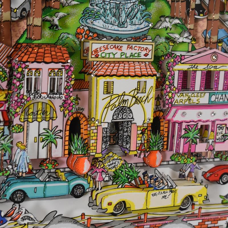 Perfectly Palm Beach (Green) by Fazzino, Charles. Please see photos and description for all available information. "Perfectly Palm Beach (Green)" is a 3D limited edition silk screen construct on paper by Charles Fazzino, DX numbered and hand signed by the artist. This piece comes custom framed. Includes Certificate of Authenticity. Measures approximately 19" x 23.5" (framed), 11" x 14" (image).