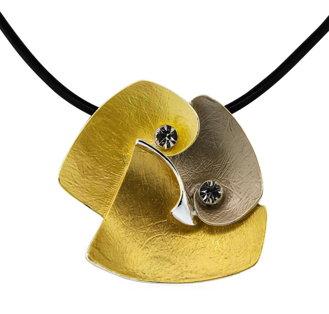 High end designer jewelry. Petal Crystal Pendant Necklace - Rhodium Plated. Rhodium Plated/3" Ext Clasp. Slv/ Gld/ Cafe. 16inches. Total Weight: 23.1 grams.
