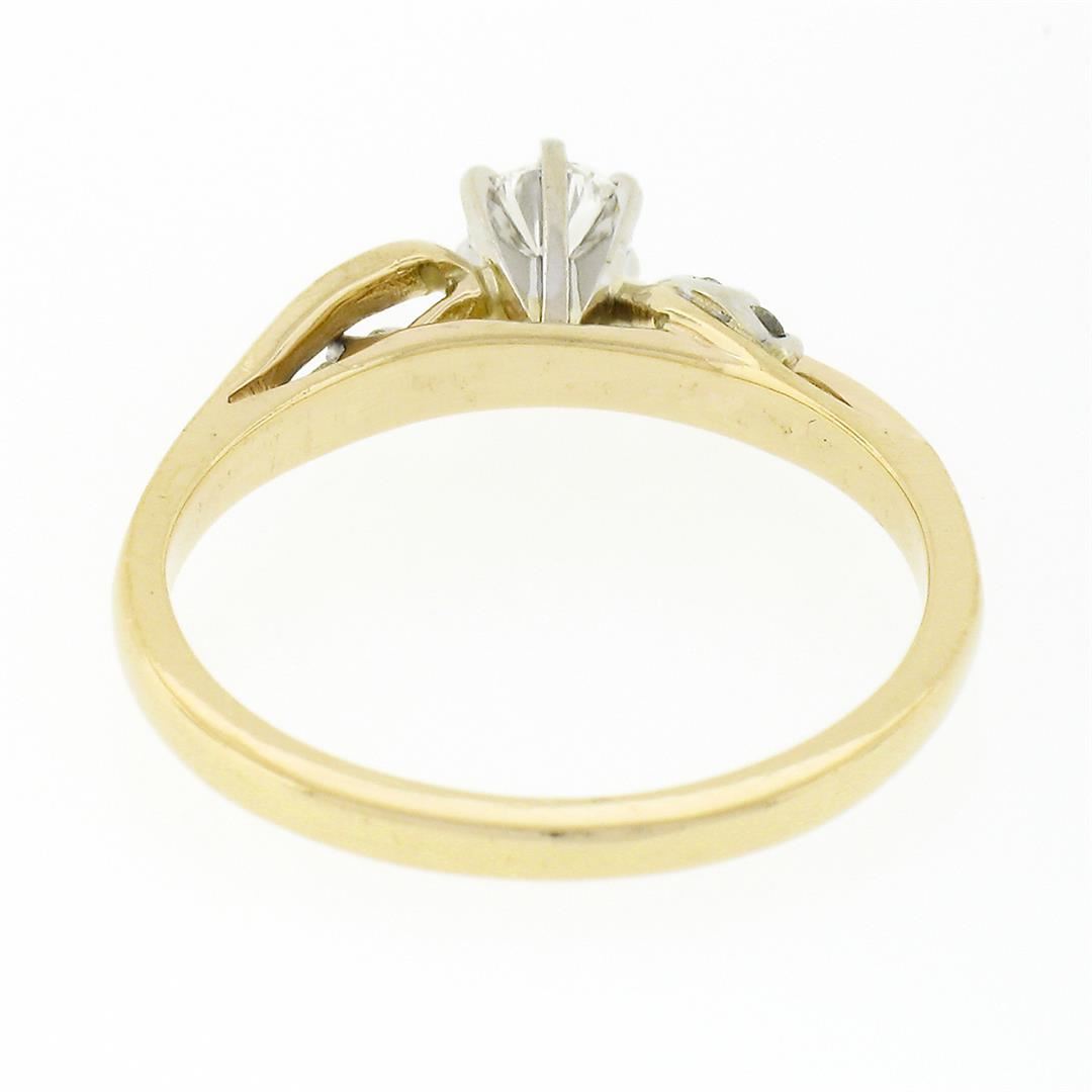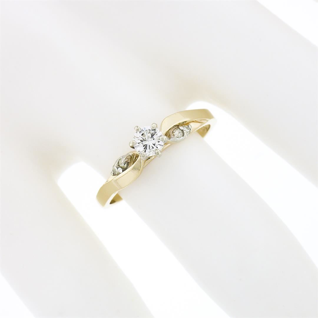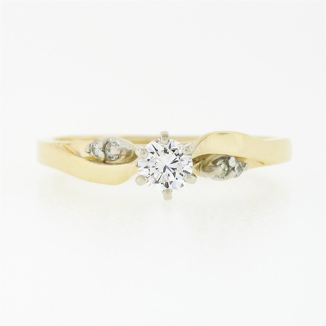 A solid 14k yellow & white gold engagement ring, with 5 round brilliant cut natural diamonds (G/H - VS1-SI1 ; 0.30ctw ). The ring is size 6.0, weighs a total of 2.56 grams, and measures 5.1mm wide.