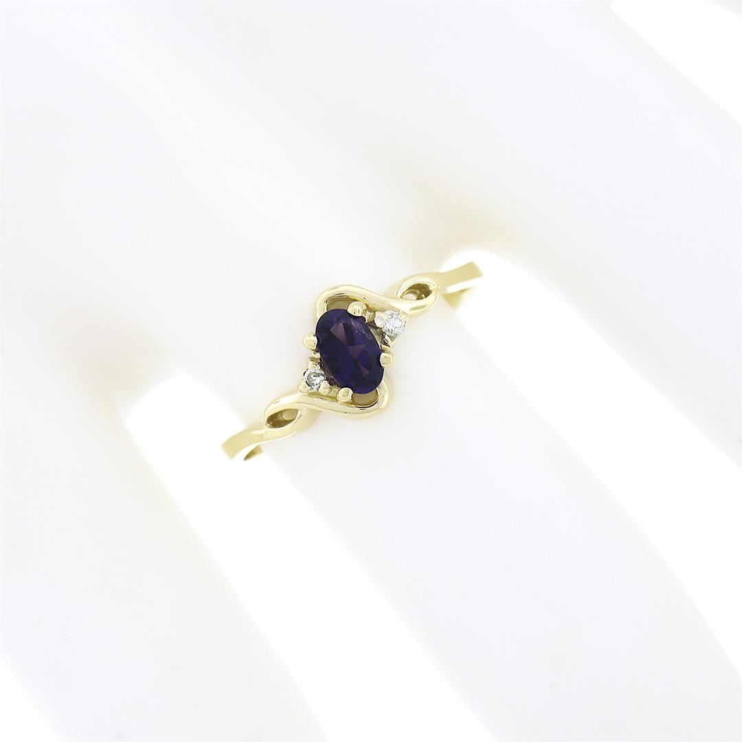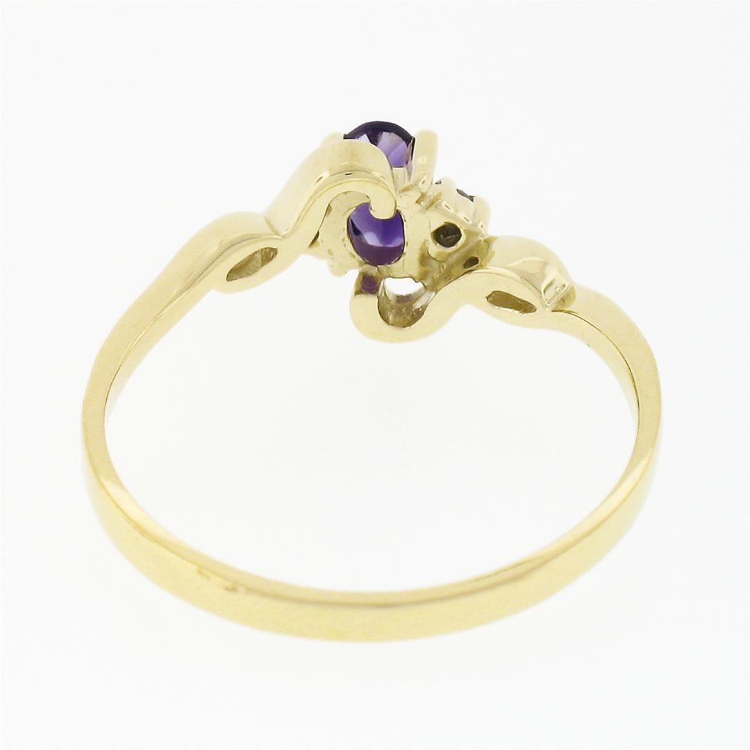 Petite Solid 10k Yellow Gold Oval Amethyst Solitaire Diamond 3 Three Stone Ring
