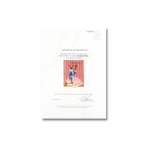 Own this amazing piece based on the original line image hand drawn and hand-inked on paper by Chuck Jones! "Pewlitzer Prize" is a sold out limited edition animation cel with hand painted coloring on sericel outline, numbered and hand signed by Chuck Jones (1912-2002). Includes Certificate of Authenticity! Measures approx. 10.5" x 12.5".
