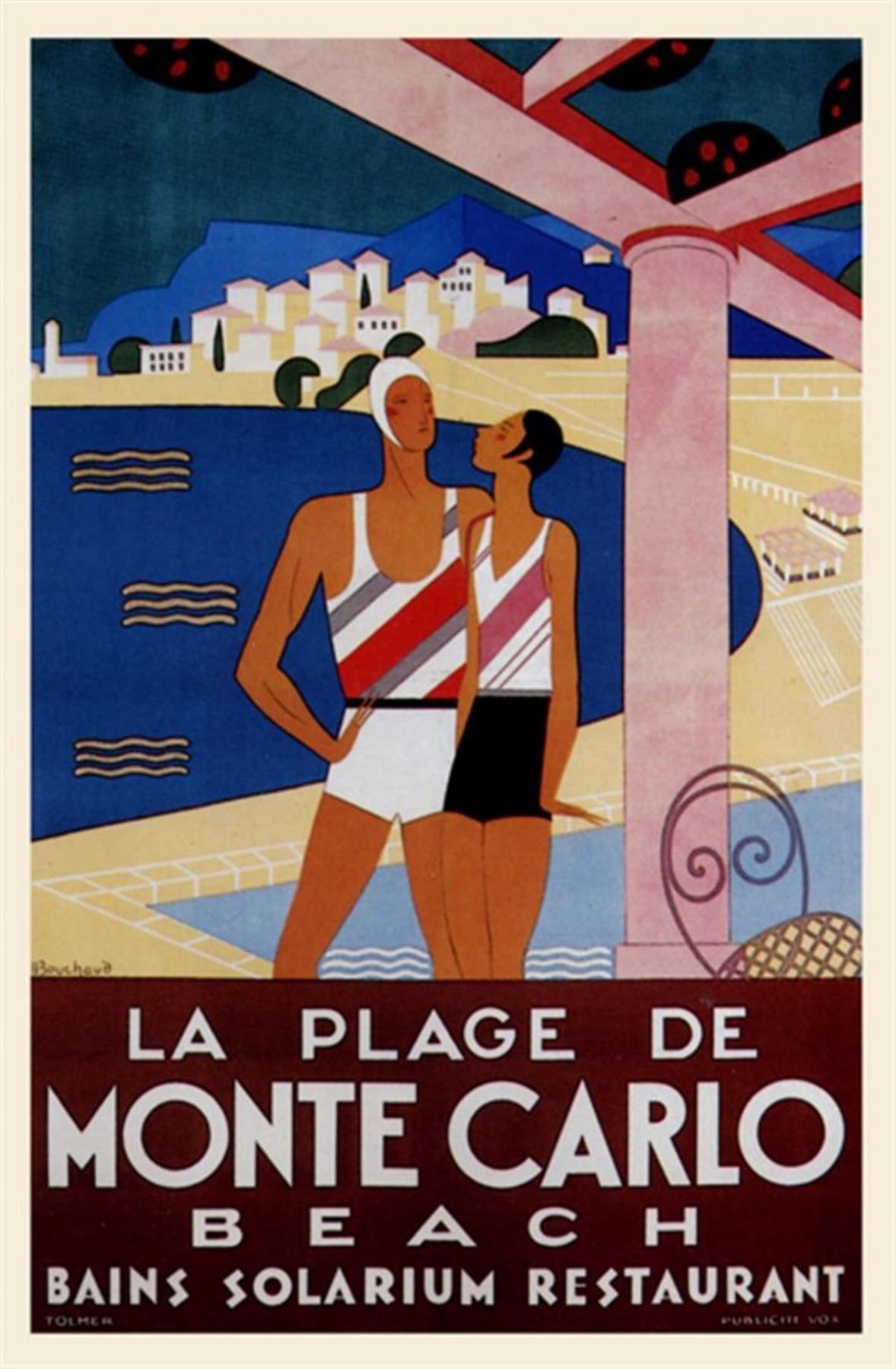 Artist: Phillipe Bouchard Title: Monte Carlo Beach Medium: Fine Art Reproduction Giclee on Canvas Image Size: Approximately 20 inches x 13 inches Unframed on Unstretched Canvas