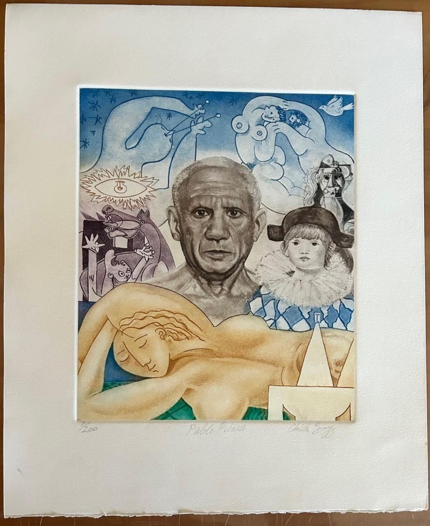 The reknowned California artist Charles Lynn Bragg created this tribute to Pablo Picasso in a limited edition hand-colored etching 18x15"