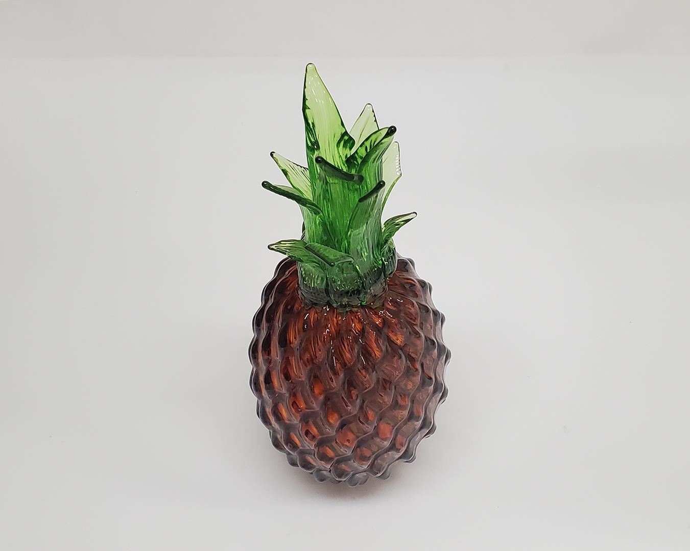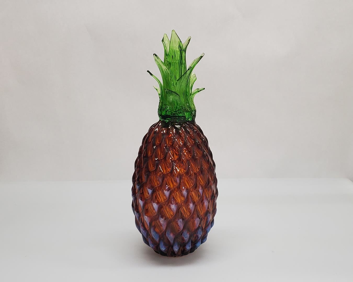 Amber and green pineapple sculpture signed in 2015, this piece measures 12.5" tall and 5" diameter.