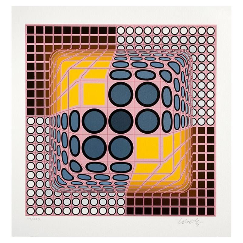 "Pink Composition", is a limited edition Serigraph on Paper by Victor Vasarely (1908-1997). Numbered and hand signed, this piece is accompanied by a letter of authenticity. Measures approximately 16" x 16" (image).