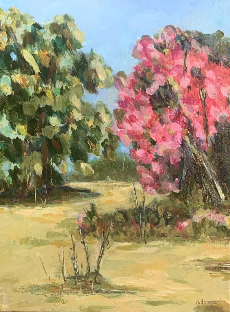 An original mixed media art by Adonna 11 x14 stretched canvas, plein air at Flying M Ranch in Somis, California, COA