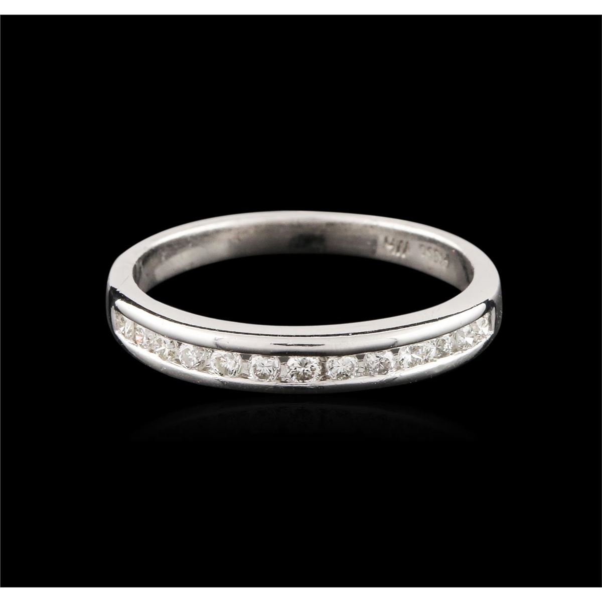 One ring featuring: platinum weighing 4.00 grams containing channel set round diamonds with a total weight of 0.25ct.