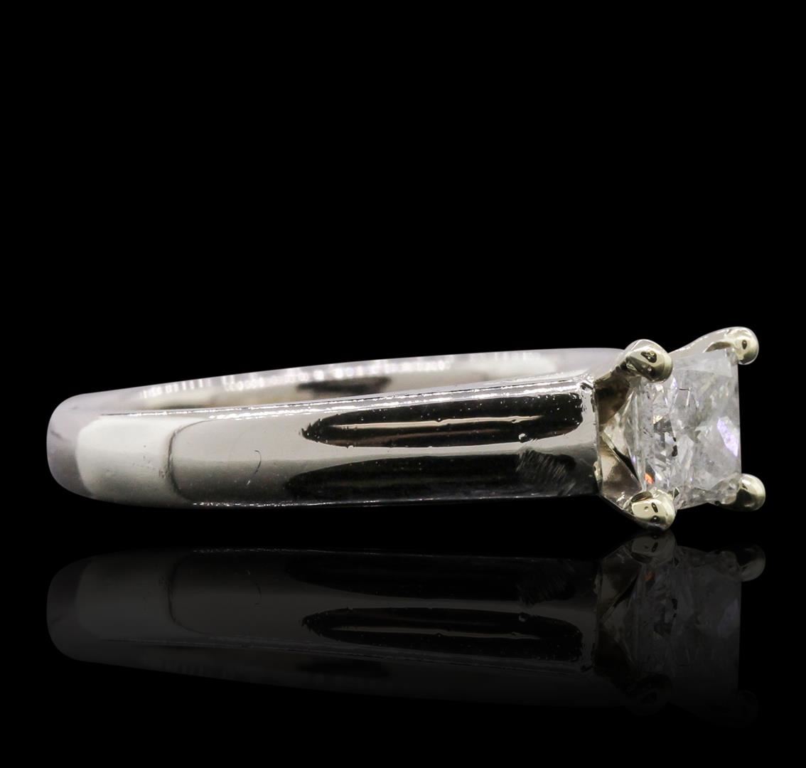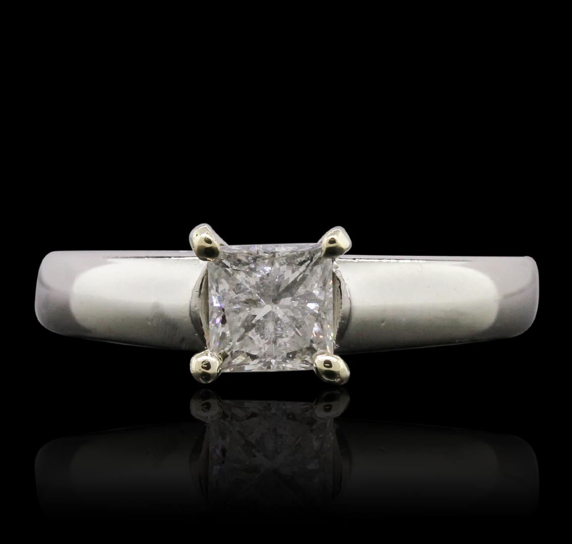 One electronically tested platinum ladies cast & assembled diamond solitaire ring. Condition is new, good workmanship. The featured diamond is set within a yellow gold basket supported by tapering shoulders, completed by a two and one-half millimeter wide band. Bright polish finish. Identified with markings of "PT 900". Containing: One prong set princess cut diamond, measuring 4.70 x 4.65 x 3.90mm (depth est.) approximate weight of 0.70ct with a faint blue fluorescence. Graded in the setting. Clarity: I-1. Color: 83.9%. Table 79.6%. Total Weight of Diamonds 0.70ct. Total Weight of Ring 7.17 grams. AIG Appraised at $5,770.00.