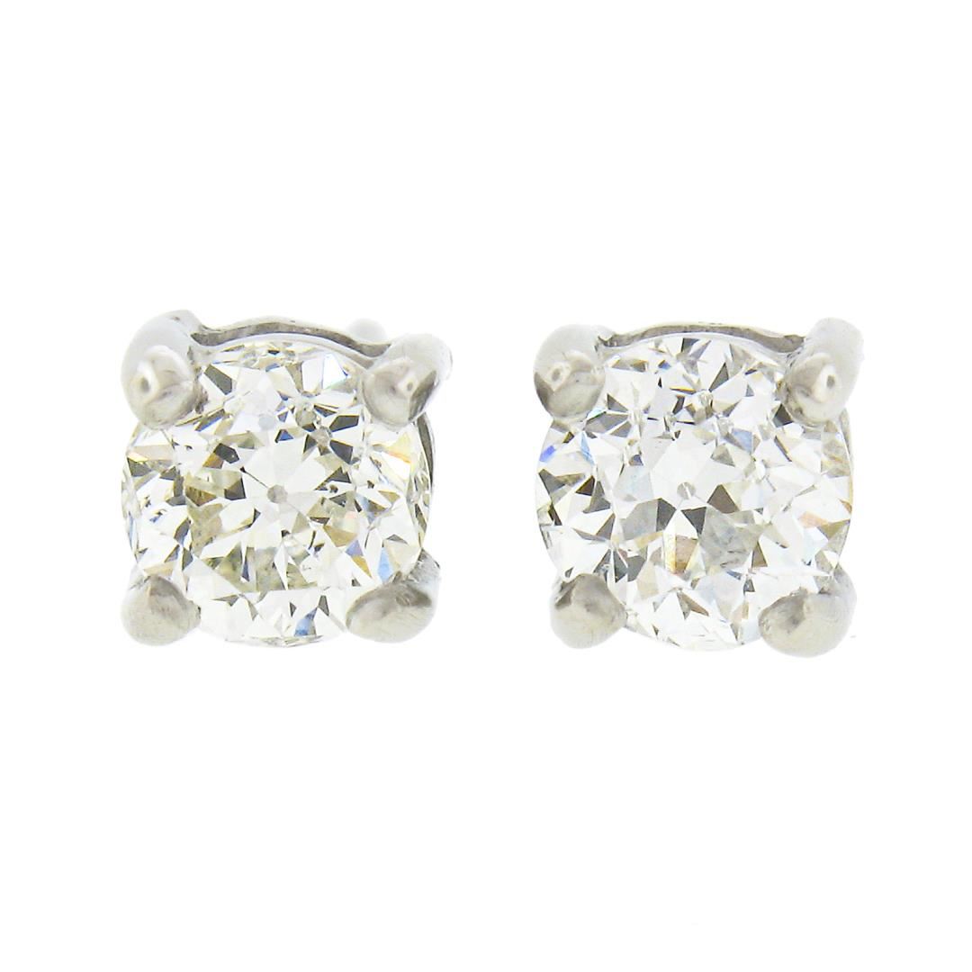 An antique solid platinum stud earrings, with 2 old european cut natural diamonds (H/I - VS2/SI1 ; 0.81). The earrings measure approximately 6mm in diameter and weigh a total of 1.83 grams.