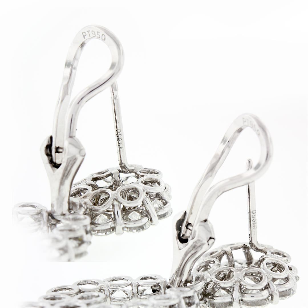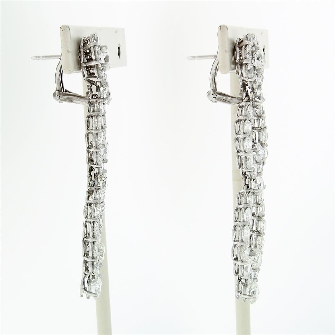 A pair of solid platinum long dangle drop earrings, with 72 round brilliant cut natural diamonds (G/H - VVS2/VS1; 14.92ctw). The earrings measure approximately 55.5x17.7mm and weigh a total of 21.47 grams.