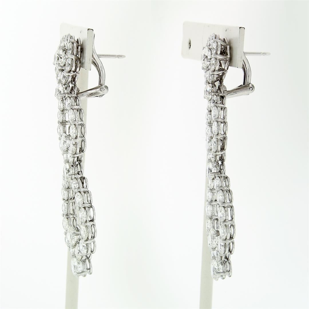 A pair of solid platinum long dangle drop earrings, with 72 round brilliant cut natural diamonds (G/H - VVS2/VS1; 14.92ctw). The earrings measure approximately 55.5x17.7mm and weigh a total of 21.47 grams.