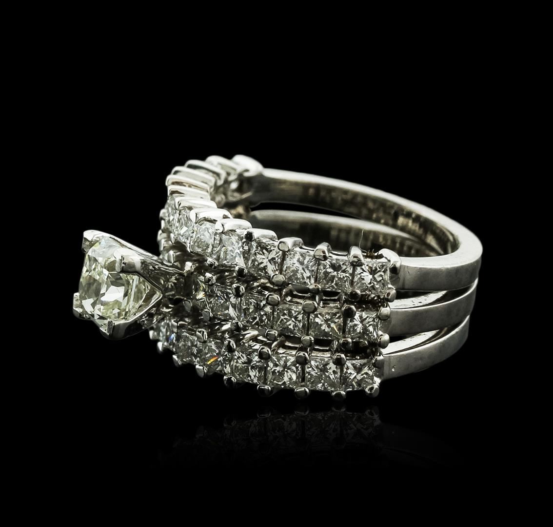One electronically tested platinum ladies combination cast & assembled diamond engagement ring with a split shank with a bright polish finish. Identified with markings of "950". Condition is new. Containing: One prong set radiant shaped cut diamond, measu