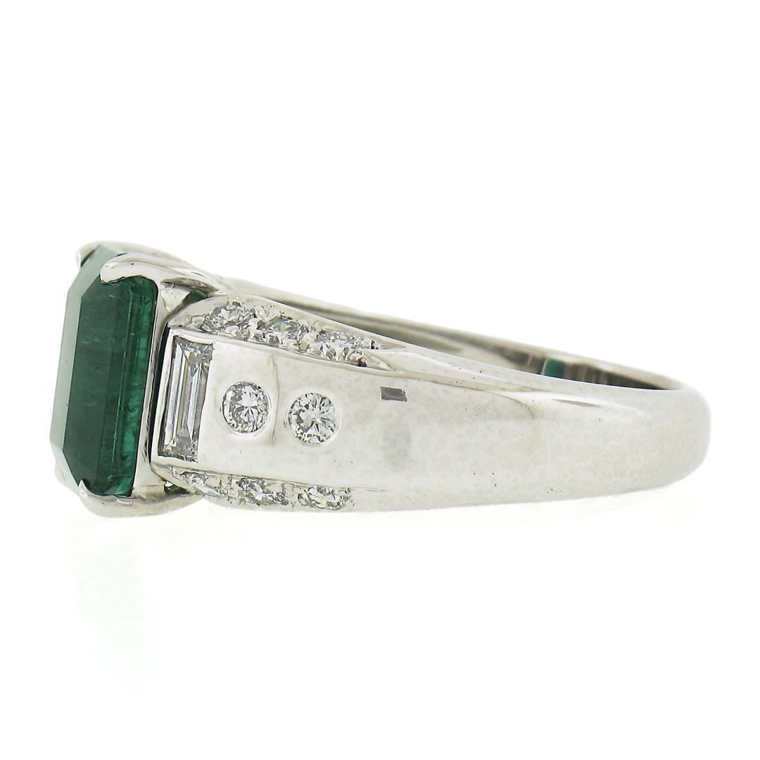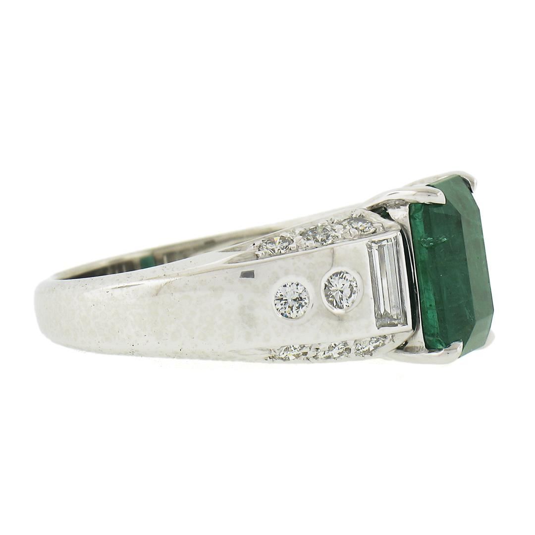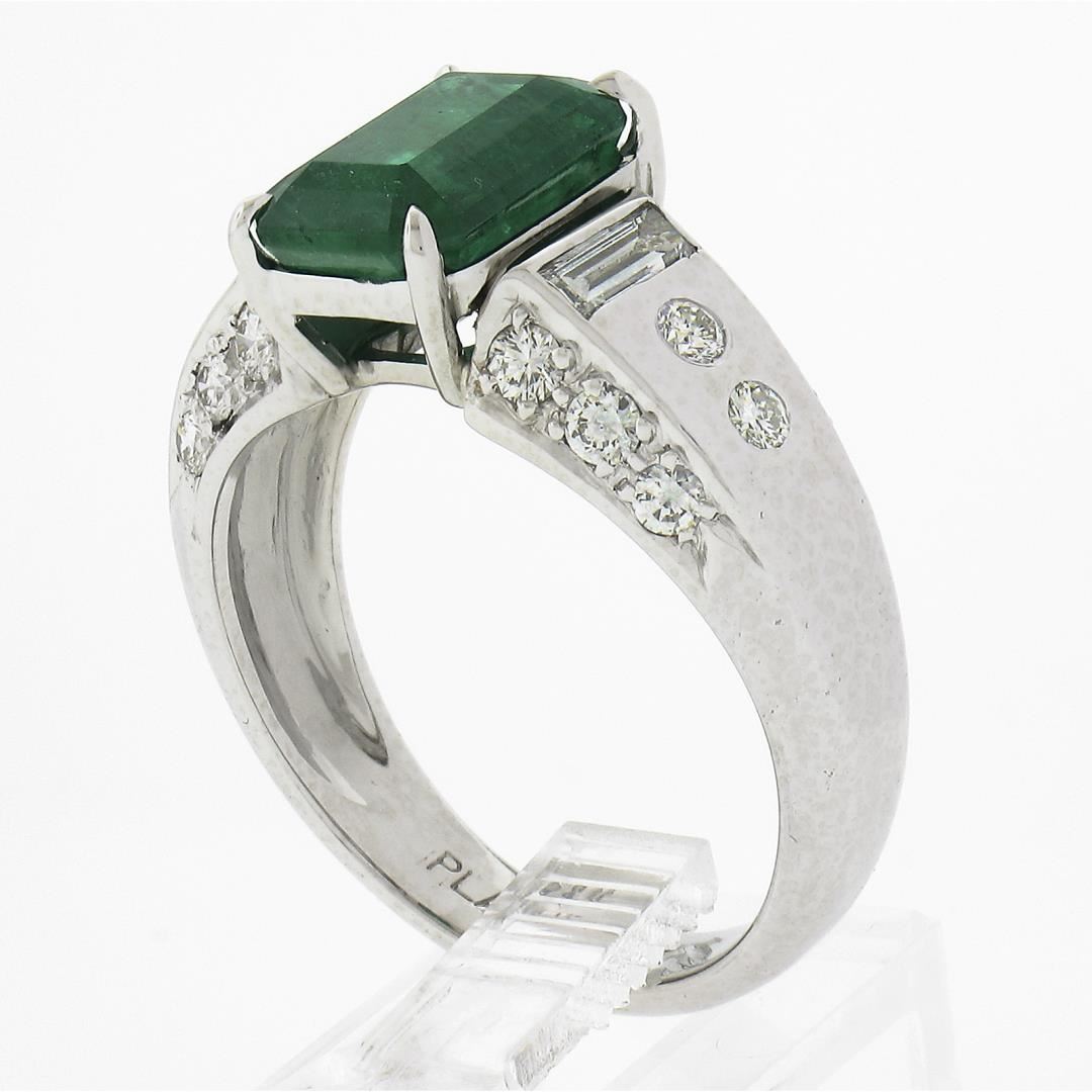 A platinum ring, with 1 GIA graded octagonal cut natural emerald ( 2.87ct ), and 18 baguette & round cut natural diamonds (G/H - VS1/VS2 ; 0.80ctw). The ring is size 8.5, weighs a total of 10.54 grams, and measures 10.5mm wide. Comes with all original relevant certifications.