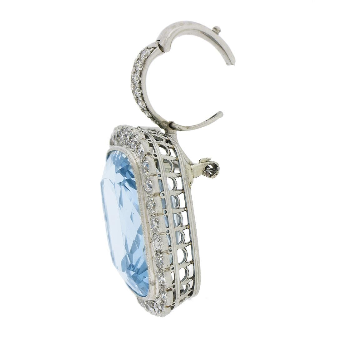 Platinum 38.9ctw GIA Cushion Cut Aquamarine Diamond Pin Brooch Enhancer Pendant