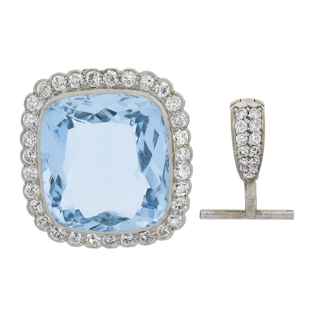 Platinum 38.9ctw GIA Cushion Cut Aquamarine Diamond Pin Brooch Enhancer Pendant