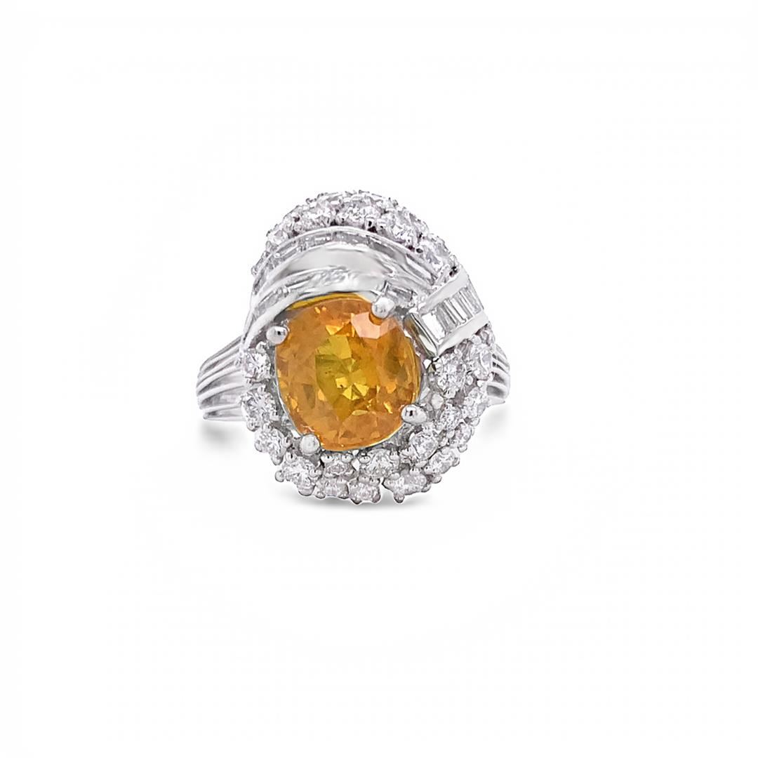 Platinum Yellow Sapphire Ring. Please see Photos and Description for all available information. This stunning yellow sapphire ring features a 4.01ct natural yellow sapphire stone in a claw setting and an 18K white gold band. This stunning stone is truly rare and is one of the most valuable gemstones, second only to diamonds.