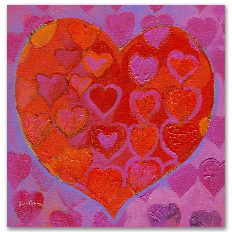 "Playful Heart VI" is a numbered limited edition giclee on canvas by Simon Bull bearing the artist's authorized signature. This piece comes gallery wrapped and includes a Letter of Authenticity. Measures approx. 12" x 12" x 1.5" (image). This item requires special handling and may have a longer than usual turnaround.