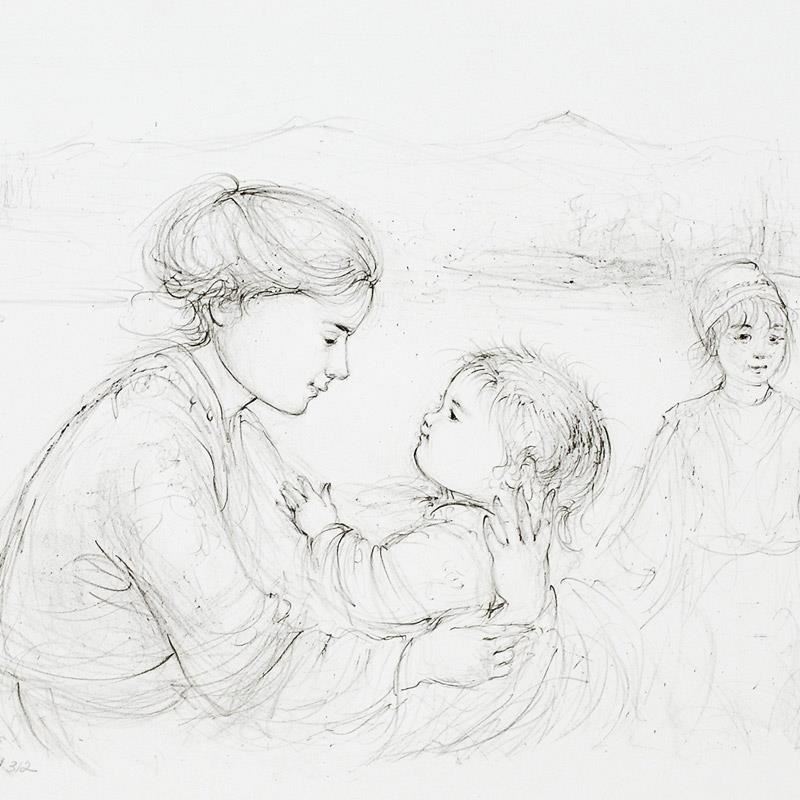 "Playful Mother and Baby" is a limited edition lithograph on paper, numbered and hand signed by Edna Hibel (1917-2014). Includes Certificate of Authenticity! Measures approx. 16" x 11.5" (with border), 16" x 9" (image).