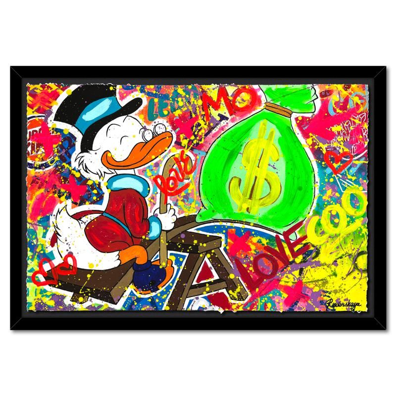 "Playing with Money" is a one-of-a-kind mixed media on deckle edge paper by Nastya Rovenskaya; hand signed by the artist. This piece comes custom framed and includes letter of authenticity. Measures approximately 36" x 46" (framed), 30" x 40" (image). This item requires special handling and may have a longer than usual turnaround.