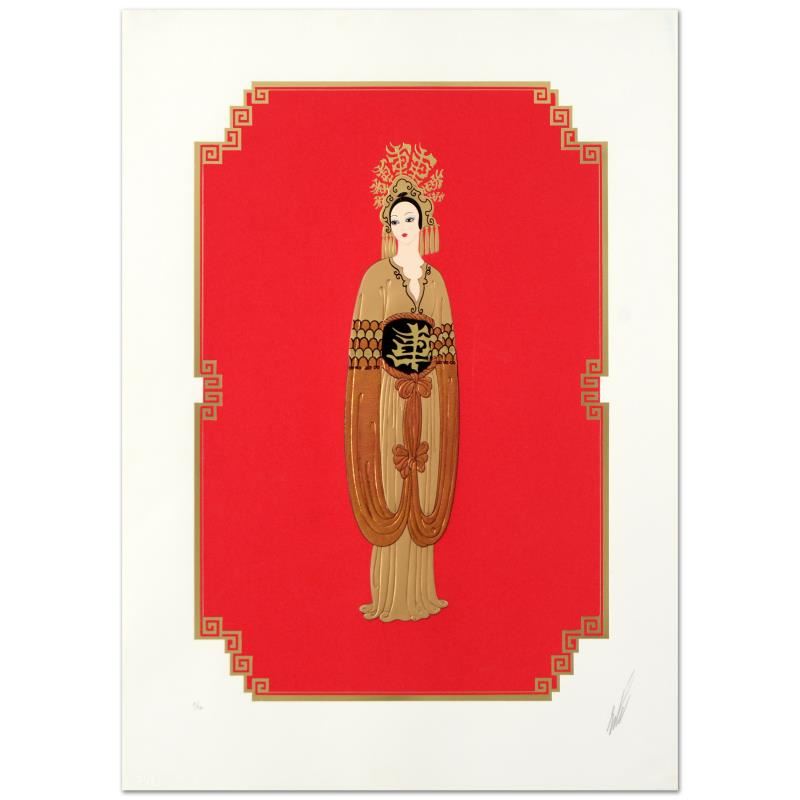 "Plum Blossom" is a limited edition serigraph on paper, numbered and hand signed by the artist. Includes Certificate of Authenticity! Measures approx. 20.5" x 28.5" (with border), 16" x 24" (image). ** There are a couple of minor creases in the image and some creases on the border, this condition is common given the age and materials used in production. **