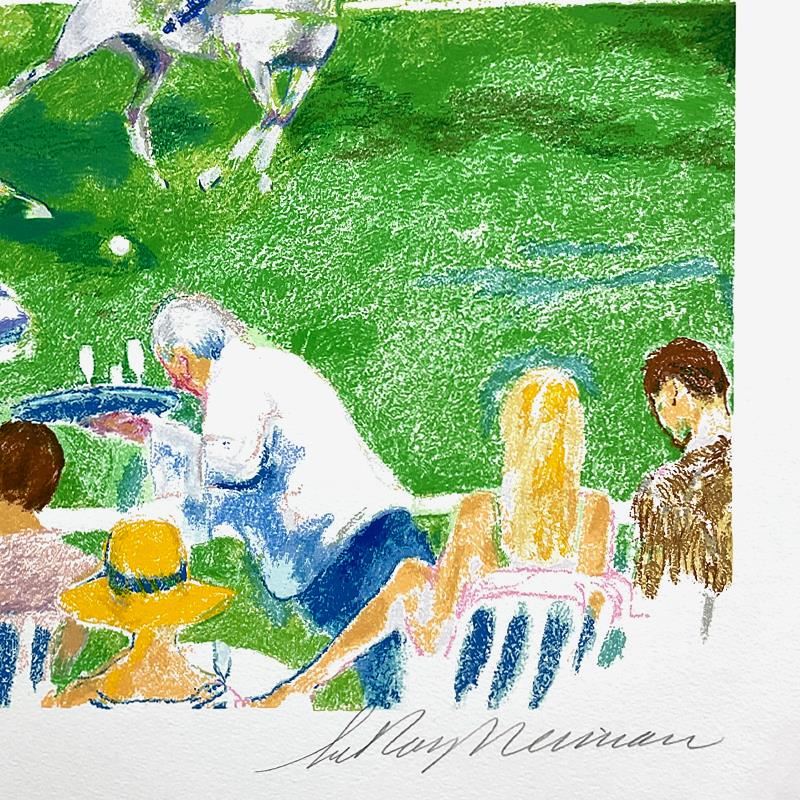 "Polo Panorama" is a limited edition serigraph on paper by LeRoy Neiman (1921-2012), numbered 21/350 and hand signed by the artist. Includes Letter of Authenticity. Measures approx. 44" x 22.5" (border), 40" x 17.5" (image).