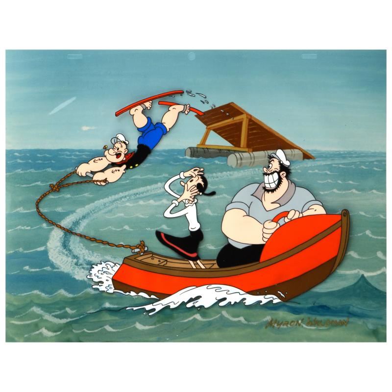 "Popeye Jumps for Olive" is a limited edition hand inked and hand painted animation cel with background, numbered and hand signed by Myron Waldman (1908-2006). Includes Certificate of Authenticity! Measures approx. 14" x 12" (background), 11" x 9" (cel).