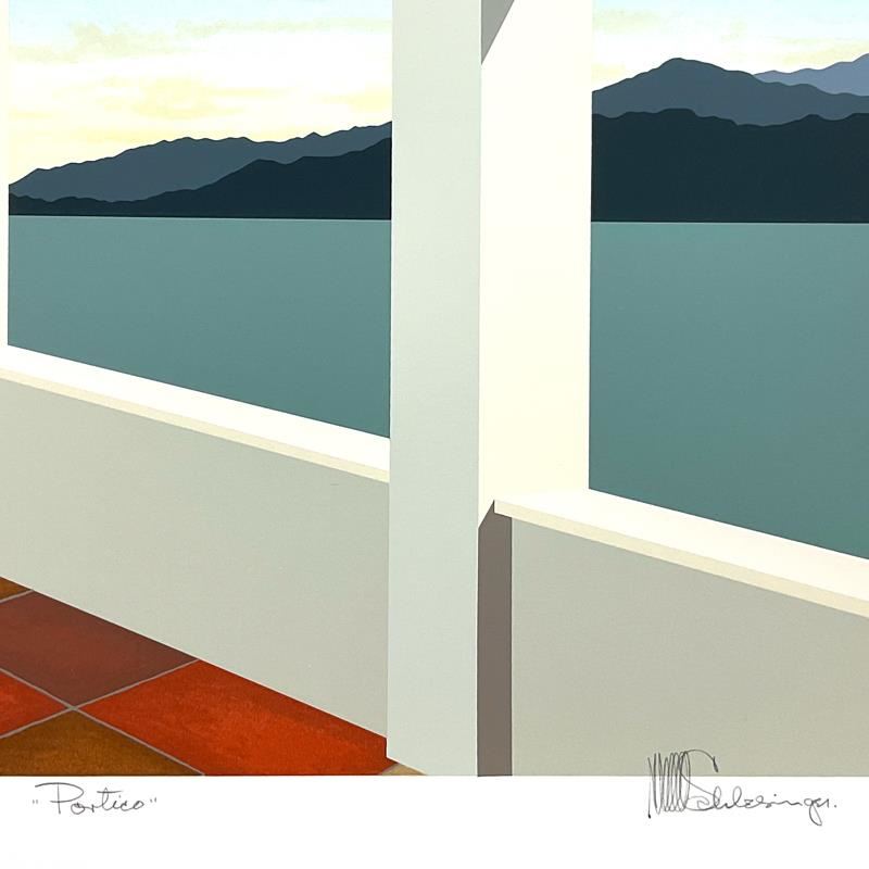 "Portico" is a limited edition serigraph on paper by William Schlesinger (1915-2011), numbered and hand signed by the artist. Includes Letter of Authenticity. Measures approx. 27.5" x 24.5" (border), 21.5" x 18" (image). Due to the age of this piece there may be very minor imperfections on the paper.