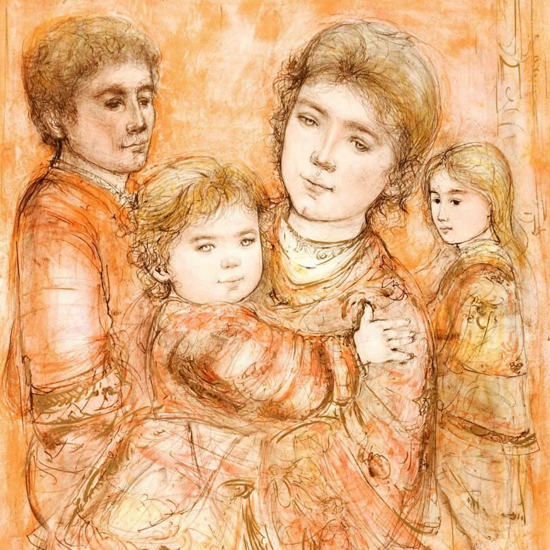 "Portrait of a Family" is a limited edition lithograph on paper numbered and hand signed by Edna Hibel (1917-2014). Includes Certificate of Authenticity! Measures approx. 31.5" x 44" (with border) 28" x 40.5" (image).