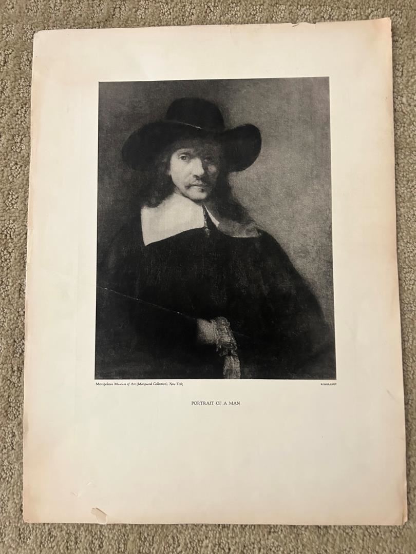 Antique reproduction of Rembrandt etching, of a Gentleman with Moustache on paper 16.5 " x 12.25"