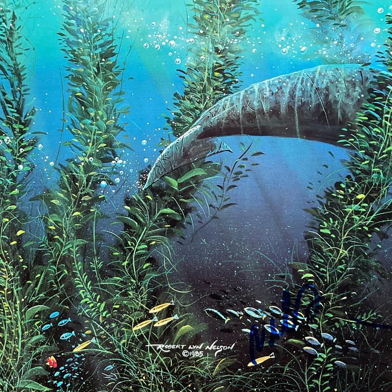 This is a hand signed poster by Robert Lyn Nelson. Measures approx. 24" x 14" (image). There may be very minor wear on the paper but the piece is in overall good condition.