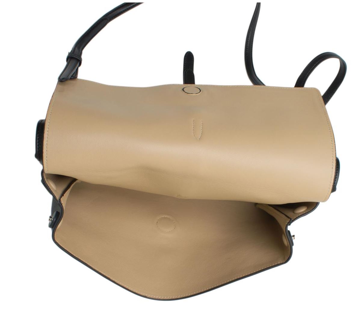 Steel Hardware, Adjustable shoulder straps, and metal lettering logo on rear flap. On interior magnetic flap pocket. Dual snap-lock closure on front flap, and magnetic snap closure on rear flap. Material: Calf Leather.H7"XW12"XW2.5". Made in Italy. This is a brand new bag.