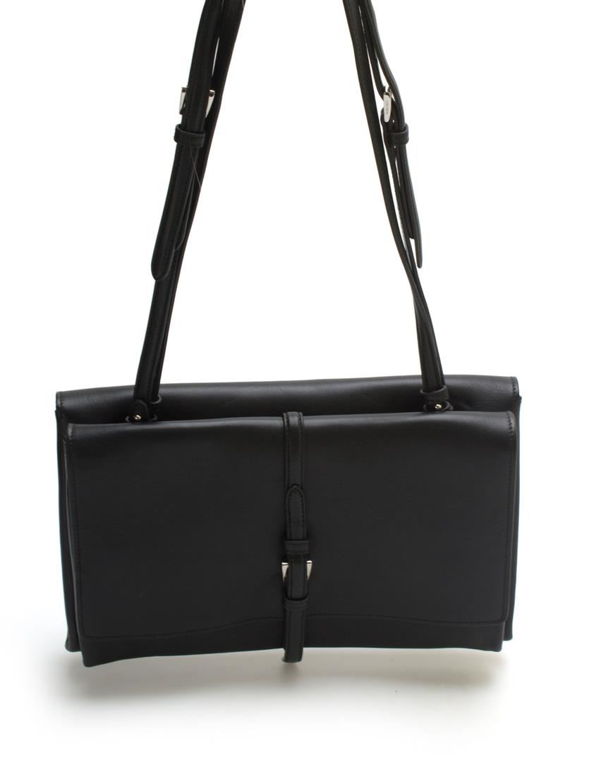 Steel Hardware, Adjustable shoulder straps, and metal lettering logo on rear flap. On interior magnetic flap pocket. Dual snap-lock closure on front flap, and magnetic snap closure on rear flap. Material: Calf Leather.H7"XW12"XW2.5". Made in Italy. This is a brand new bag.