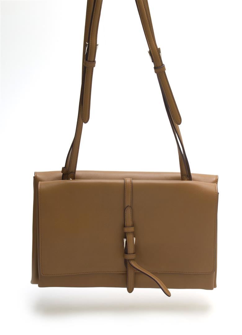 Steel Hardware, Adjustable shoulder straps, and metal lettering logo on rear flap. On interior magnetic flap pocket. Dual snap-lock closure on front flap, and magnetic snap closure on rear flap. Material: Calf Leather.H7"XW12"XW2.5". Made in Italy. This is a brand new bag.